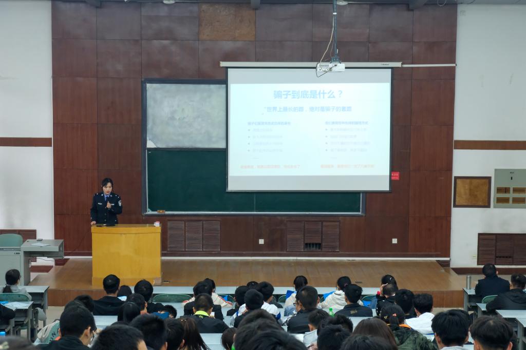 开展了“电信网络诈骗特点以及防范”讲座,200余名2019级本科生参加。