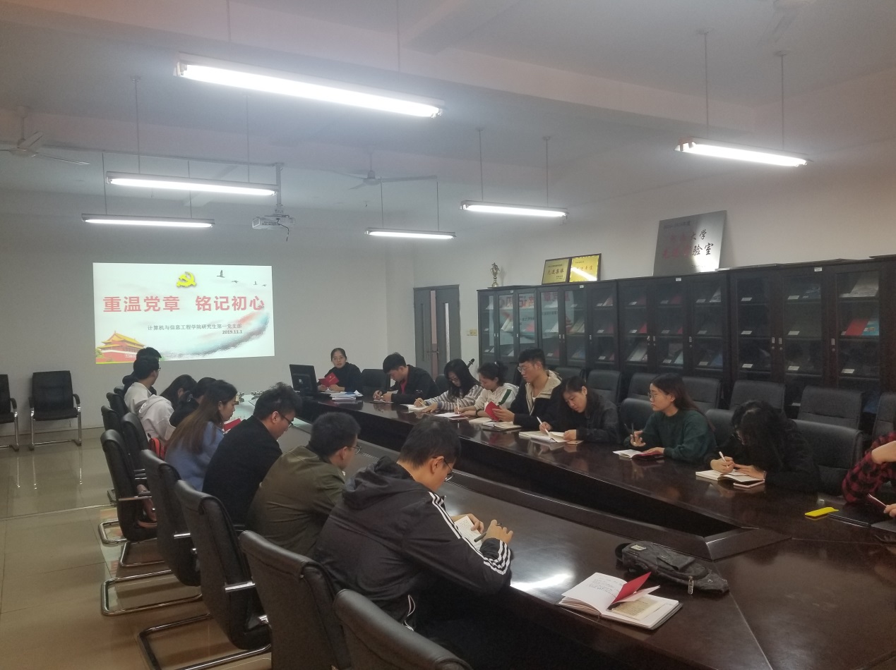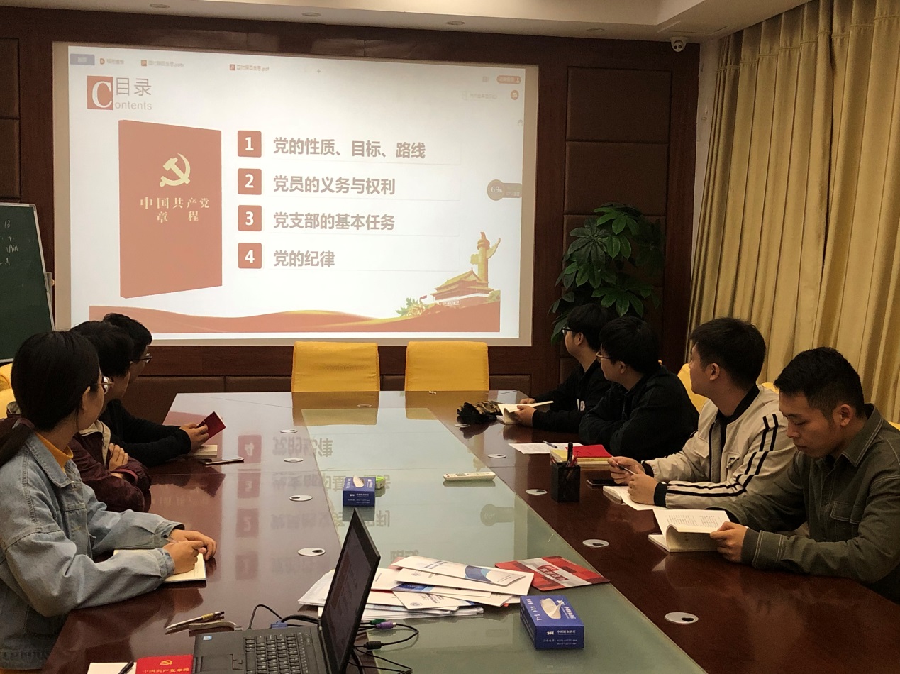 11月1日,研究生第一党支部书记郑珊珊以“重温党章,铭记初心”为题讲专题党课。郑珊珊围绕党章的崇高地位,对党章的发展历程、总纲和各条文进行了全面的解读,进一步明确了党员的义务和权利,希望各位党员认真履行义务,正确行使权利,发挥党员的先锋模范带头作用。