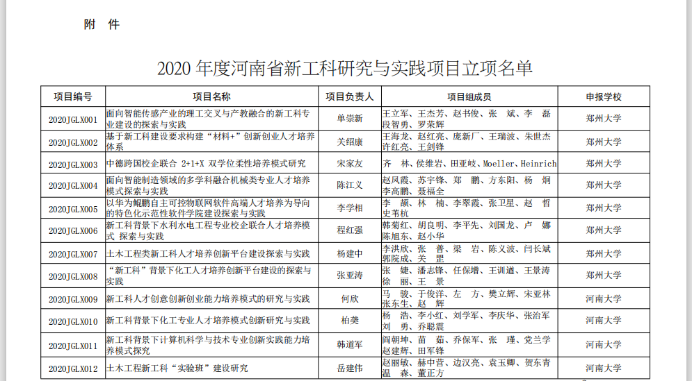 近日,河南省教育厅公布了2020年河南省新工科研究与实践立项项目的名单,黄色网址大全