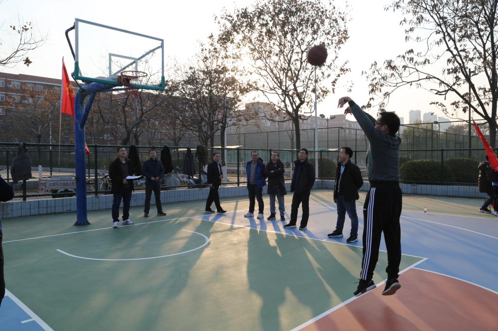 在“赶羊穿林”轻松快乐的氛围中,套圈比赛开始了,看似简单的套圈,难度系数可不低,教师们认真的投,分析小圈运动轨迹,玩的不亦乐乎。与此同时投篮比赛也在进行着,教师们沿三分线自主围成了半圆。参赛老师拿到篮球就按耐不住激动的心情、跃跃欲试,他们全力以赴、一丝不苟,一点点地增加着比赛积分。
