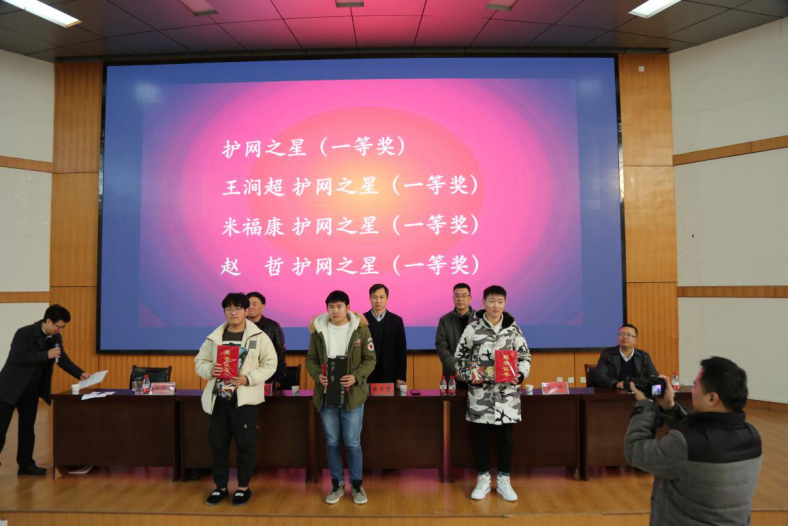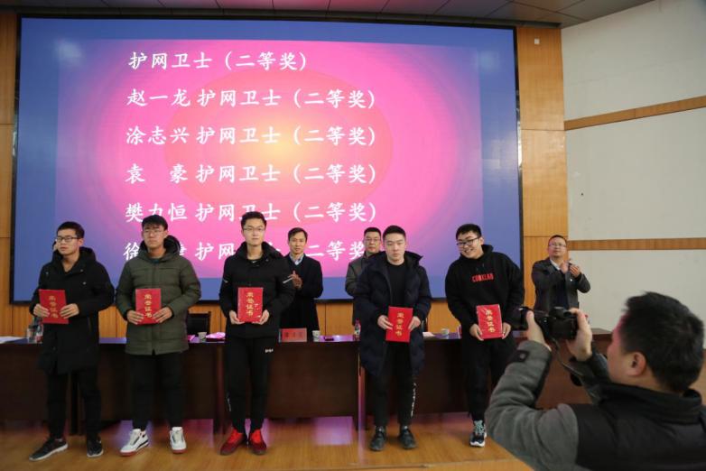 党委书记吕冰、副院长韩道军出席表彰大会。出席大会的还有开封市委网信办的其他领导及学院教师代表和2018、2019级信息安全专业的全体同学。本次表彰大会由韩道军主持,信息安全系党支部书记张磊负责组织筹备。