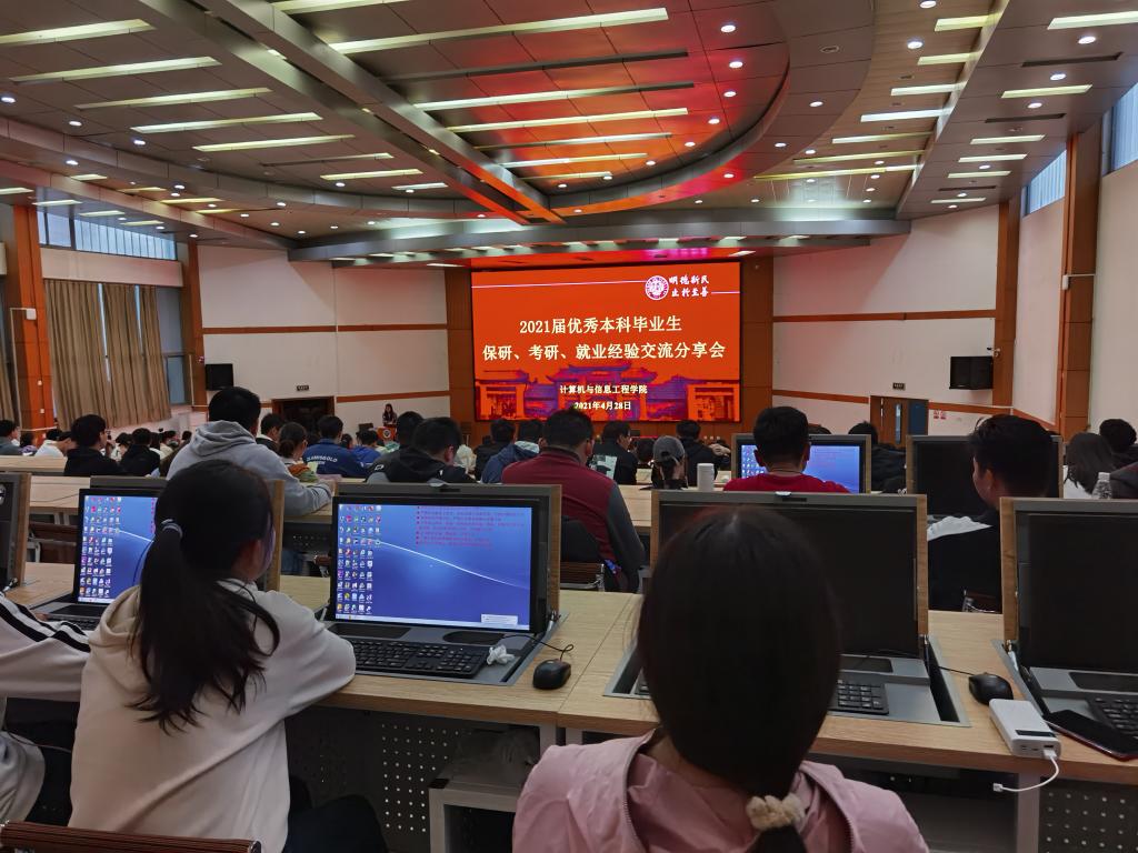 2021届优秀本科毕业生保研、考研、就业经验交流分享会在计算机大楼201机房成功举行。本次交流分享会邀请了2017级计算机科学与技术专业查斌、崔少峰、祁梦楠、连贺扬、刘旭璐、陈恒勋、邵丽丽,2017级自动化专业高彬彬、刘翔宇、赵二伟优秀学长学姐进行经验分享。
