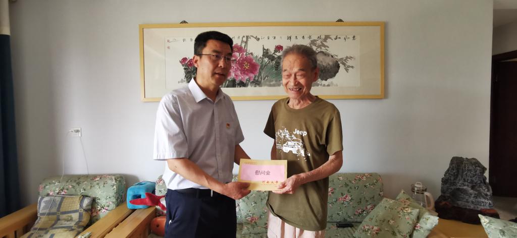 吕冰一行先后走访了有着50年以上党龄的窦霓军、李培良、张克礼、闫焕宝4位老师和困难党员,向他们致以节日问候和崇高敬意。每到一家,吕冰亲切询问老党员的身体状况、生活起居和具体困难,向他们送去了鲜花,佩戴了“光荣在党50年”纪念章。看到老党员们身体硬朗,精神矍铄,大家十分高兴,吕冰代表学院向他们为学院建设发展做出积极贡献表示感谢,并叮嘱他们要保重身体,保持乐观心态,健康长寿,有实际困难及时向组织反映。