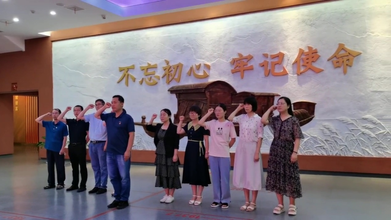 在宣誓大厅,全体党员庄重举起右拳,重温了入党誓词,再次向党表明永远跟党走的决心和信心。