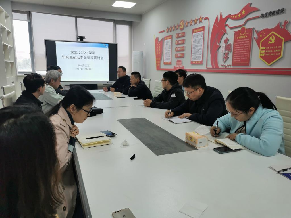 10月8日上午,学院2021-2022学年第1学期研究生前沿课程研讨会在院305会议室举行,前沿课程十余位任课教师参加了会议。研讨会由学院院长乔保军主持。