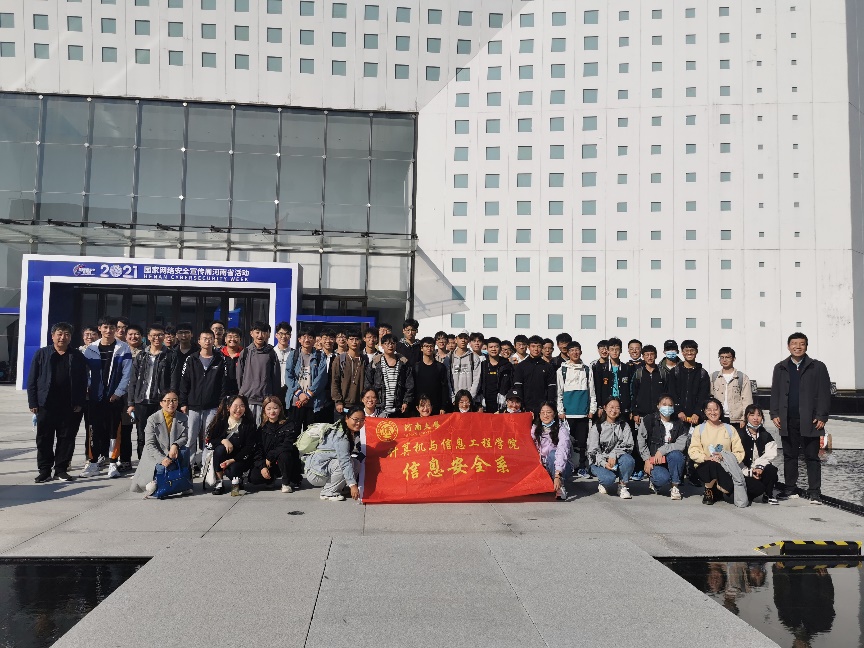 计算机信息工程学院信息安全系组织学生,张磊老师、杜晓玉老师和鲁建国老师带队,到郑州市网络安全科技馆进行实践学习活动。