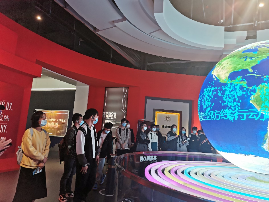 网络安全科技馆设置个人安全、政企安全、社会安全、综合竞技四个主展区,共200余个展项和1700多件展品,同学们在馆内学习了个人通信安全、个人隐私安全、个人财产安全、家庭空间安全、网站安全、数据安全、专用领域网络安全、智能系统网络安全和网络安全等级保护等相关专业知识,同时对窃密与反窃密、国家关键信息基础设施安全、供应链安全等重大历史事件和法律法规有了进一步的了解,学习网络安全政策法规、网络技术、常见风险、防范措施等知识,从而对本专业所涉及的技术和社会负责有更深的理解。