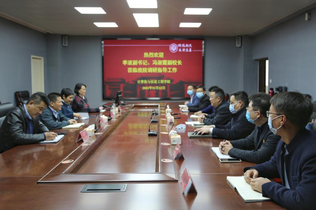 冯淑霞对学院近年来所取得的成绩表示肯定,希望学院牢牢抓住信息学科发展机遇,在师资队伍建设,尤其是高层次人才引进方面要开拓思路,树立“不求所有、但求所用,不求所在、但求所为”的观念,用好用足人才政策。要善于集中力量办大事,进一步聚焦专业建设和学科发展,凝练学科特色,办出特色高水平专业和学科。