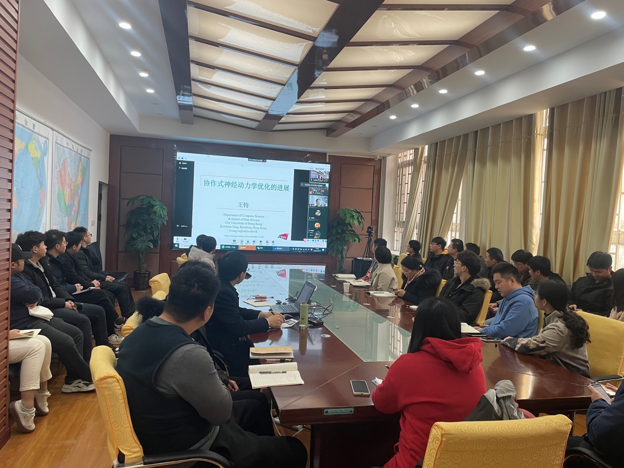 师生做了主题为《神经动力学优化研究》的学术报告,报告会由学院副院长左宪禹主持。学院部分研究生和教师在曾宪梓楼104会议室,及线上腾讯会议参加了报告会。
