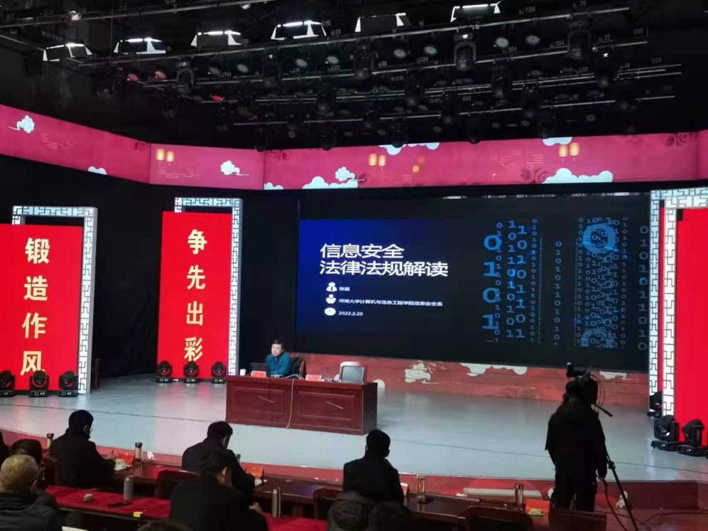 信息安全系党支部书记张磊受邀到河南省平顶山市宝丰县,给全县党政干部100余人作了关于信息安全法律法规解读的讲座,讲座在平顶山市宝丰县融媒体中心进行。
